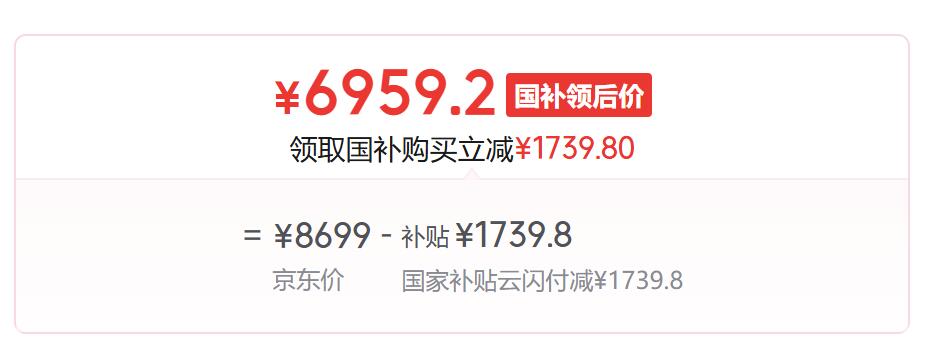 优惠:¥8699京东价-补贴¥1739.8